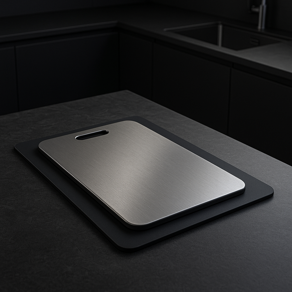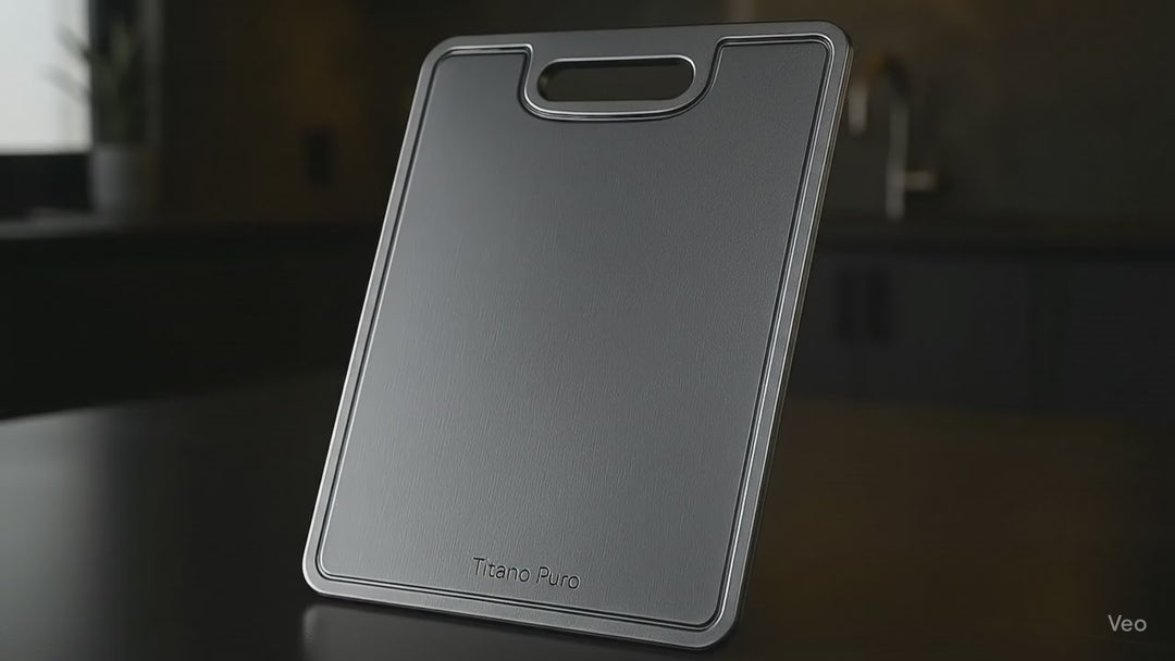 Ogni tagliere Titanio Puro unisce l'eleganza minimalista italiana con l'ingegneria di precisione di livello medico.