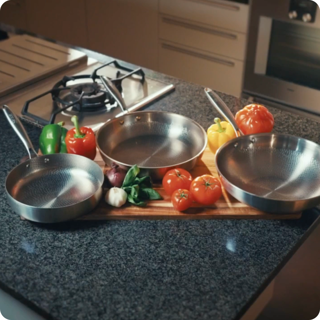 Il design martellato garantisce una distribuzione uniforme del calore.